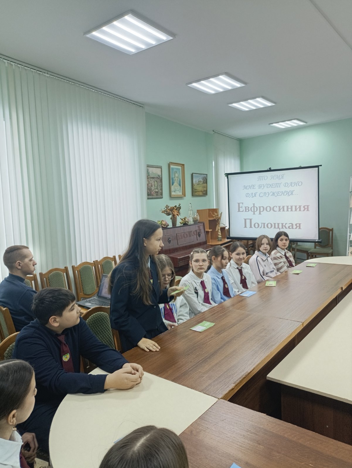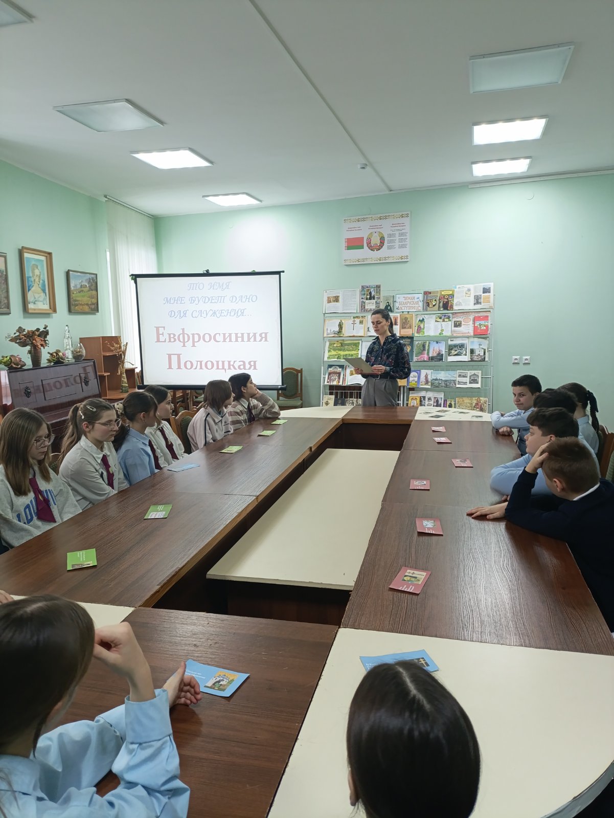 Сегодняшний урок истории «Заступница земли белорусской», посвященный Ефросиньи Полоцкой, посетили ребята из 6 «А» класса СШ№3. Началось мероприятие с беседы о значении личности Евфросинии, святой покровительницы и небесной заступницы белорусской земли. Особое внимание было обращено на духовное наследие святой, её просветительскую деятельность. В завершении мероприятия ребята совершили виртуальное путешествие к памятникам в честь Евфросинии Полоцкой, увидели изображение храмов, которые носят ее имя, познакомились с произведениями, посвященными светлому образу просветительницы.