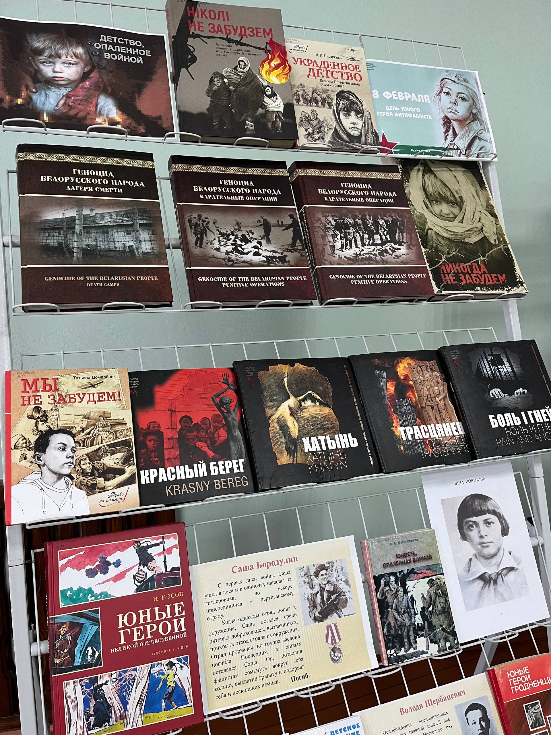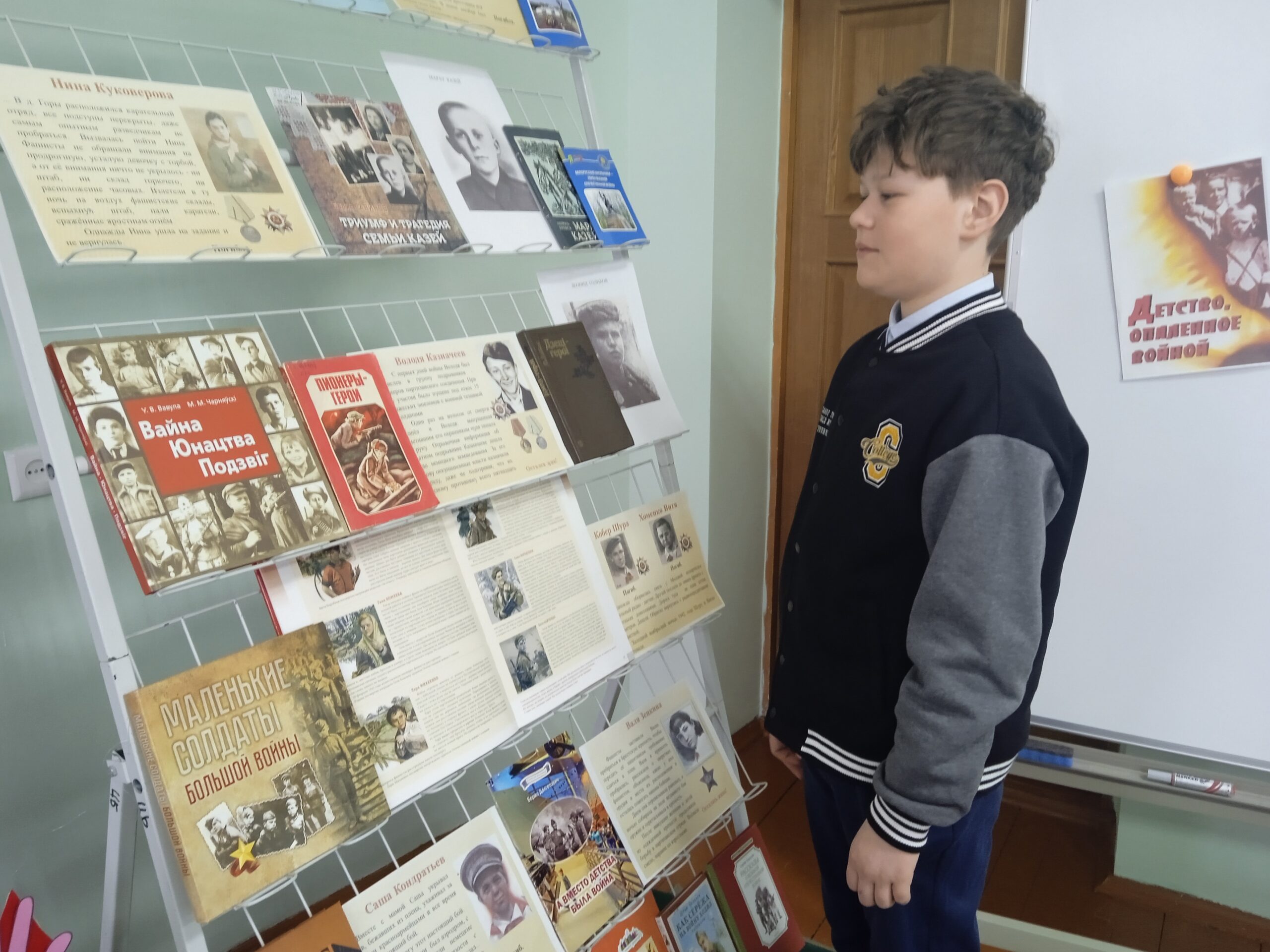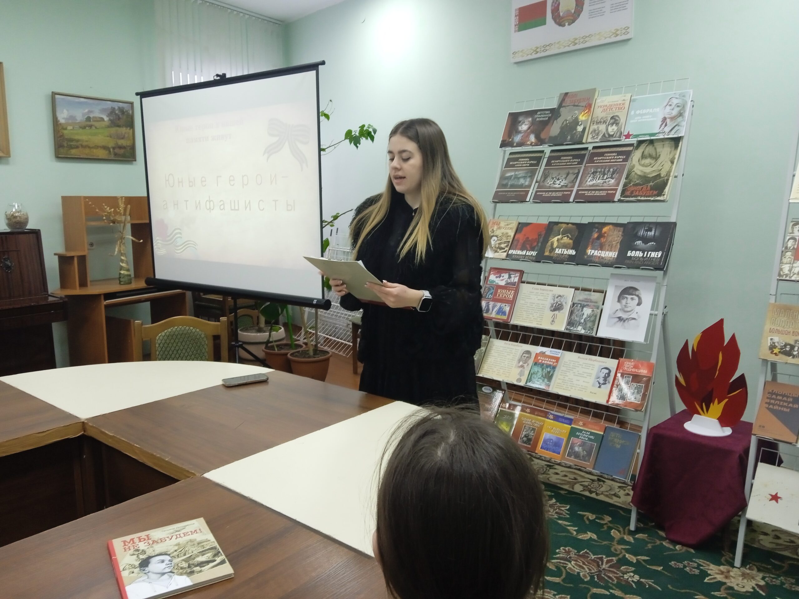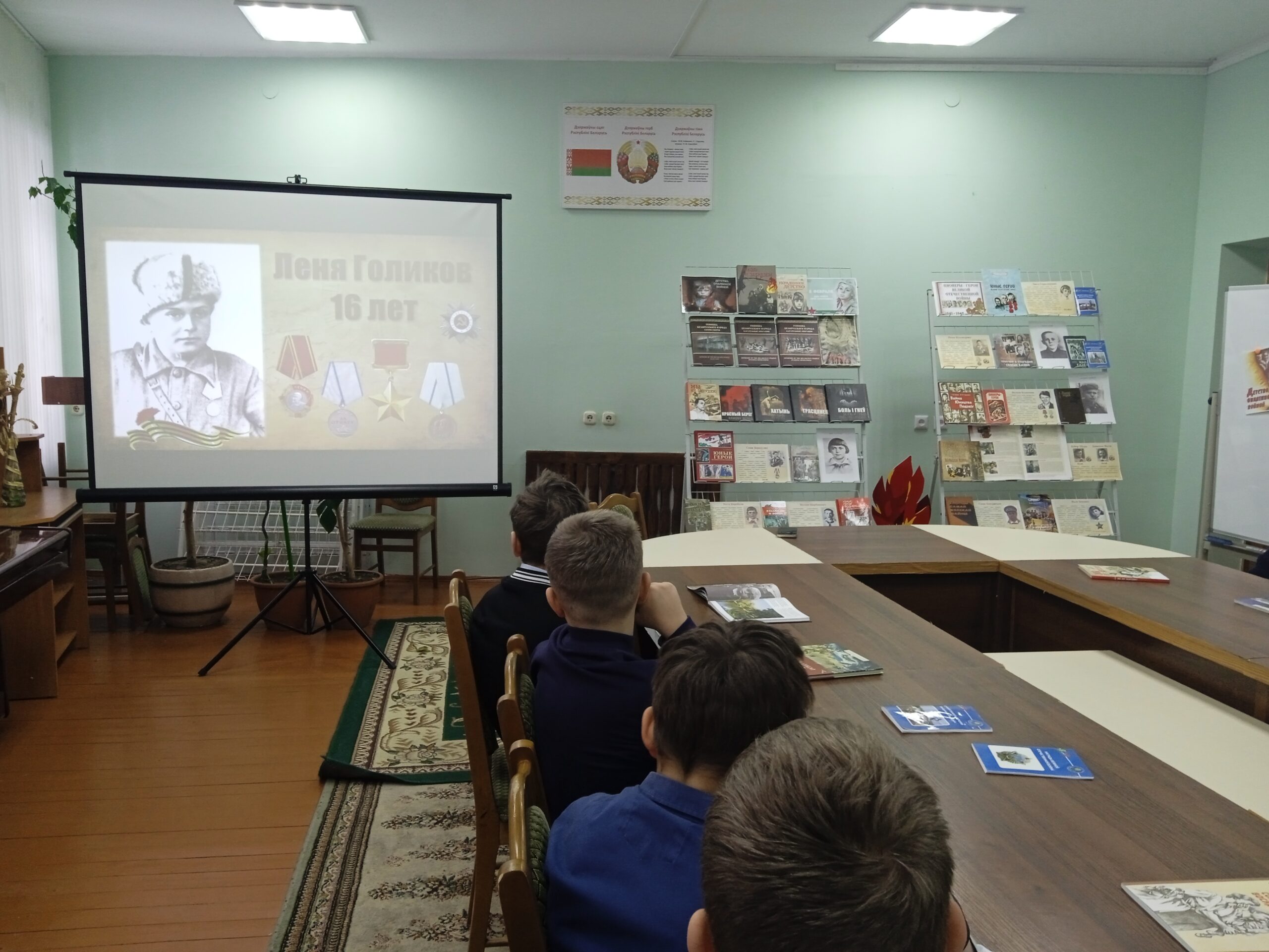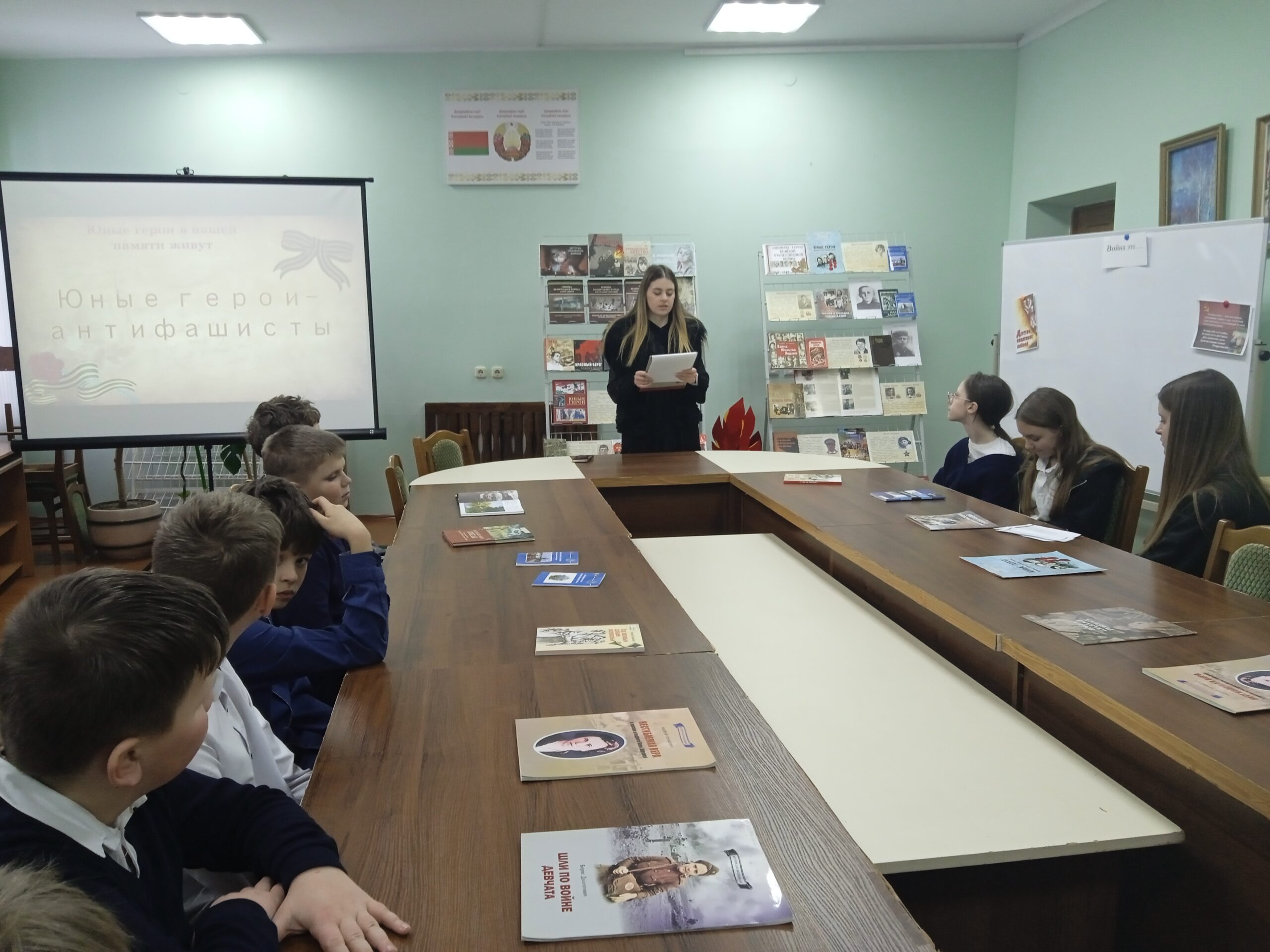 Напярэдадні Дня юнага героя-антыфашыста, які адзначаецца 8 лютага, у дзіцяча-юнацкім сектары прайшоў урок мужнасці “Дзяцінства, апаленае вайной”. Што прымушала дзяцей браць у рукі зброю і нароўні з дарослымі ісці ў бой, які ўнёсак зрабілі маленькія абаронцы Радзімы ў гады Вялікай Айчыннай вайны – пра гэта і многае іншае вялася размова з вучнямі 6 класа СШ №1 г. Навагрудка. Дзеці даведаліся шмат цікавых гістарычных фактаў з жыцця юных герояў.