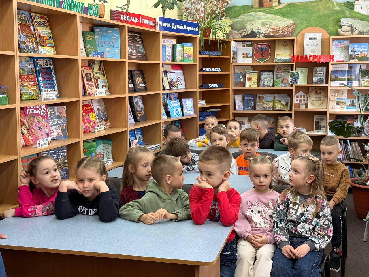 Сегодня, в детско-юношеском секторе было шумно и весело — к нам в гости заглянули самые маленькие читатели, воспитанники Детского сада №7 г. Новогрудка! Для детей была проведена экскурсия по библиотеке «Путешествие в книжный город». Ребята совершили увлекательное путешествие по «книжным улицам», узнали, где живут сказки, и познакомились с правилами бережного обращения с книгами. Особый интерес вызвали самые необычные издания: книги-панорамы и интерактивные энциклопедии с окошками.
