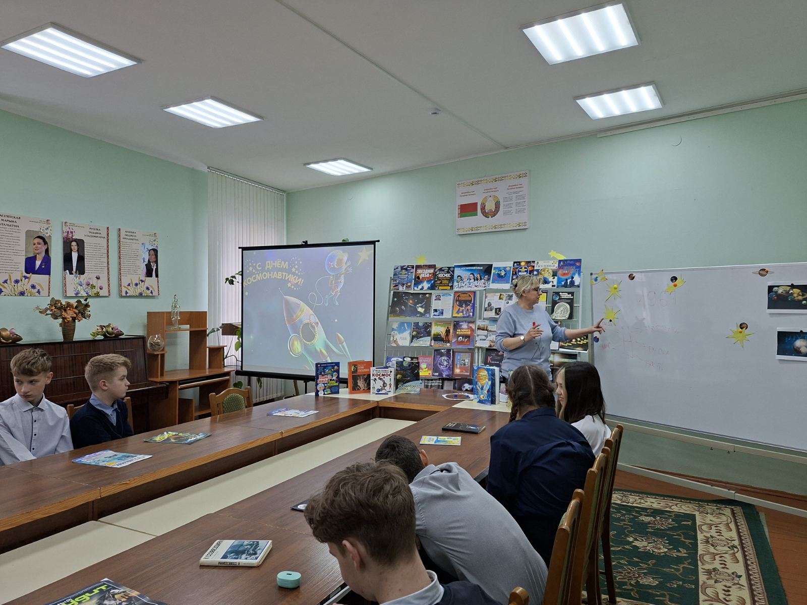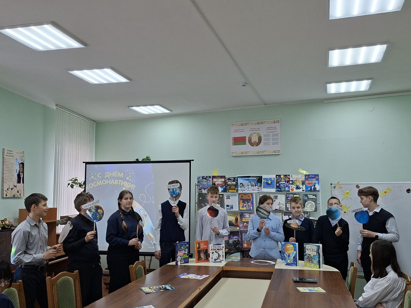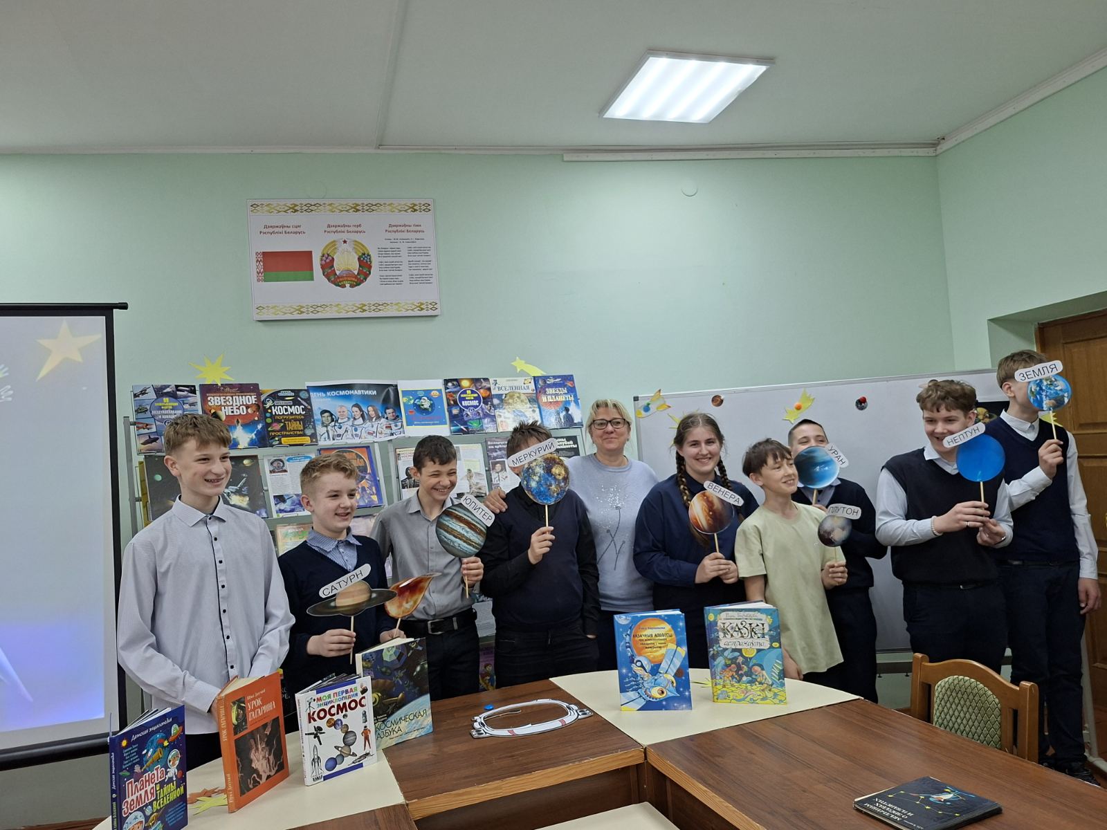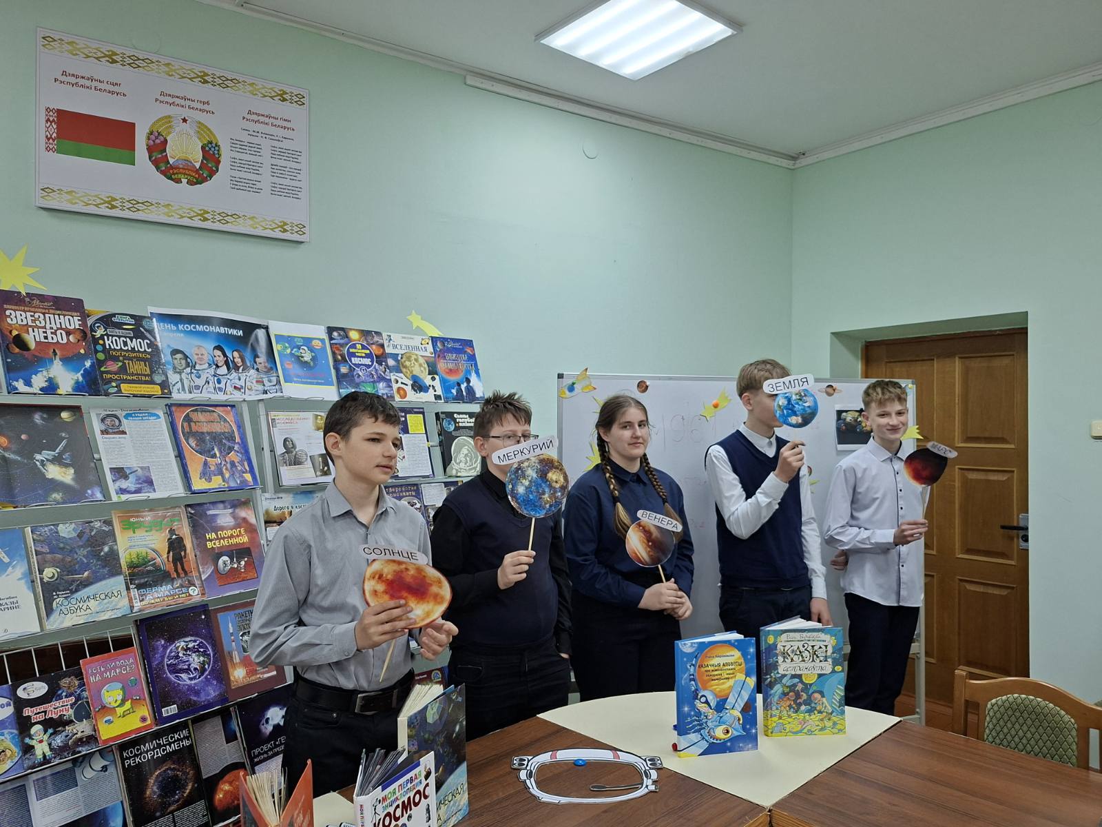 Ежегодно 12 апреля весь мир отмечает День космонавтики. Это настоящий праздник, объединяющий людей всей Земли в едином стремлении познать то, что находится за её пределами. В преддверии этой даты в детско-юношеском секторе прошёл урок-путешествие «День космонавтики», который посетили учащиеся 7 класса СШ№1. В самом начале мероприятия библиотекарь рассказала ребятам о первых покорителях космоса – собаках Белке и Стрелке, первом космонавте Юрии Гагарине, первой женщине-космонавте Валентине Терешковой, а также о первой белоруске-космонавте Марине Василевской. Школьники совершили виртуальное путешествие по просторам Вселенной, познакомились с космическими объектами – галактиками, звездами и созвездиями, астероидами, кометами и планетами. Мероприятие сопровождалось тематическими играми – ребята выступали в роли планет Солнечной системы и вращались вокруг Солнца.