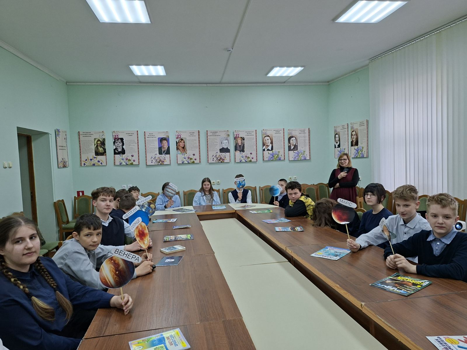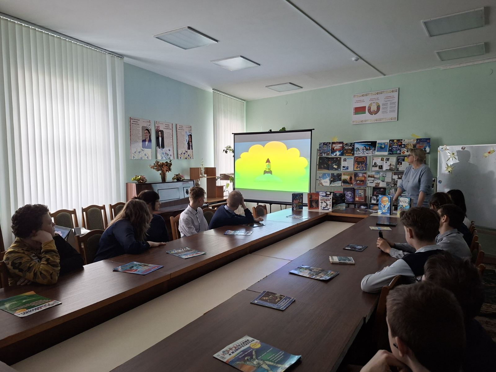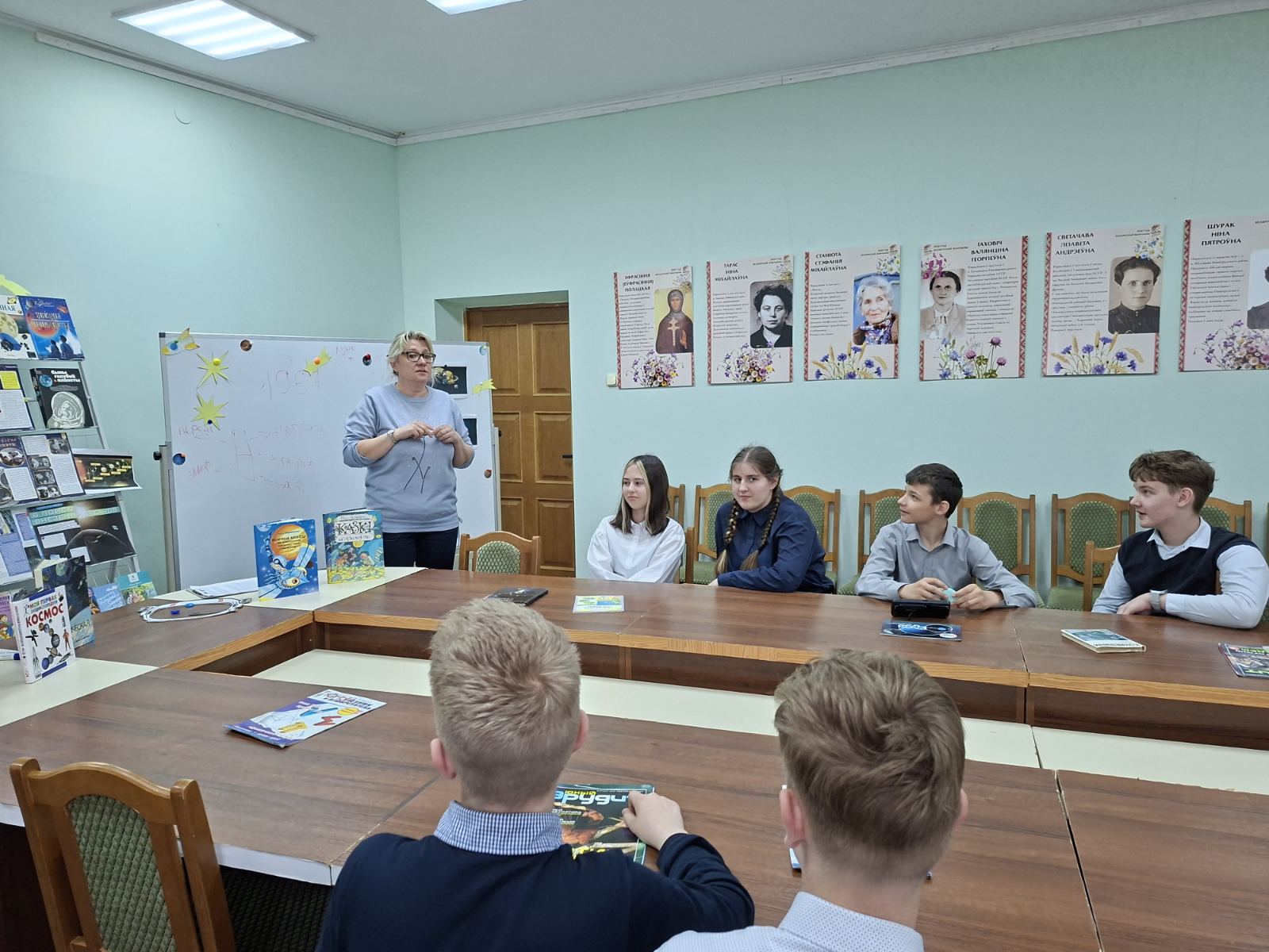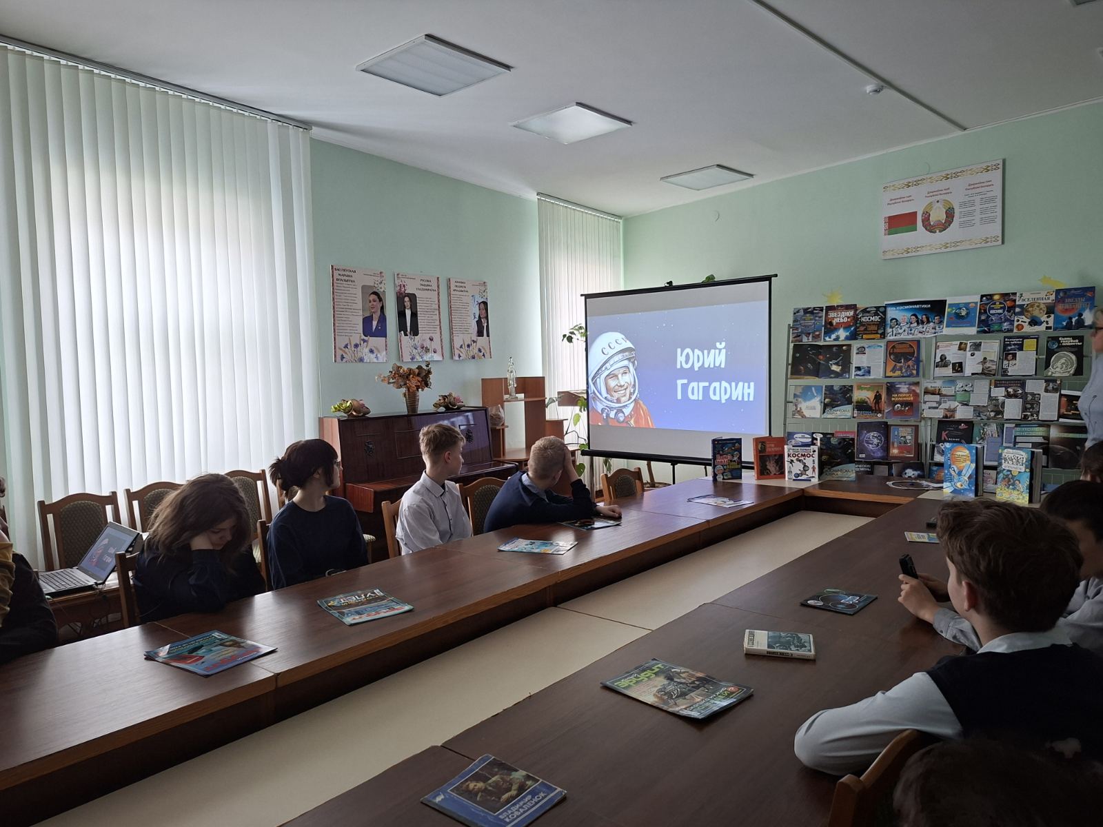 Ежегодно 12 апреля весь мир отмечает День космонавтики. Это настоящий праздник, объединяющий людей всей Земли в едином стремлении познать то, что находится за её пределами. В преддверии этой даты в детско-юношеском секторе прошёл урок-путешествие «День космонавтики», который посетили учащиеся 7 класса СШ№1. В самом начале мероприятия библиотекарь рассказала ребятам о первых покорителях космоса – собаках Белке и Стрелке, первом космонавте Юрии Гагарине, первой женщине-космонавте Валентине Терешковой, а также о первой белоруске-космонавте Марине Василевской. Школьники совершили виртуальное путешествие по просторам Вселенной, познакомились с космическими объектами – галактиками, звездами и созвездиями, астероидами, кометами и планетами. Мероприятие сопровождалось тематическими играми – ребята выступали в роли планет Солнечной системы и вращались вокруг Солнца.
